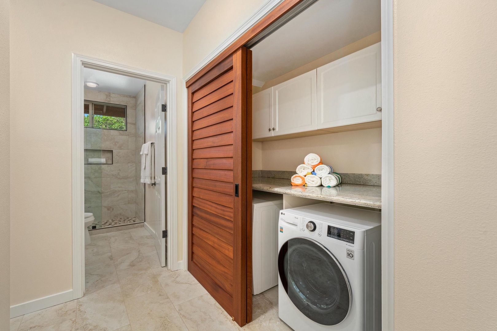 Your private laundry nook keeps you comfortable with fresh towels and the convenience of in-unit washer access.