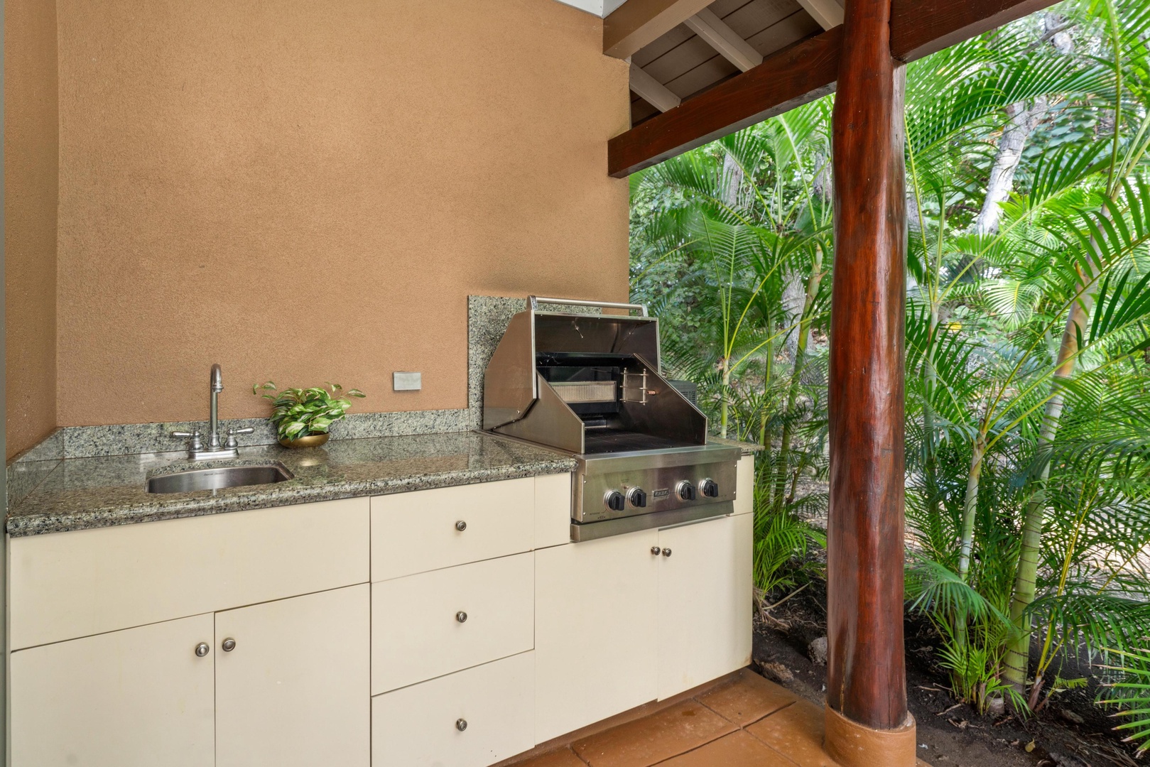 Your outdoor kitchen opens to lush tropical gardens, where you'll grill surrounded by swaying palms and natural beauty.