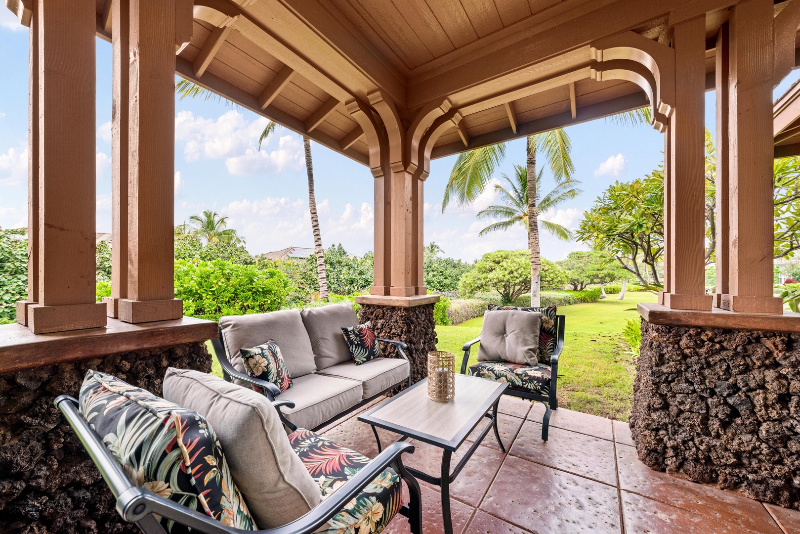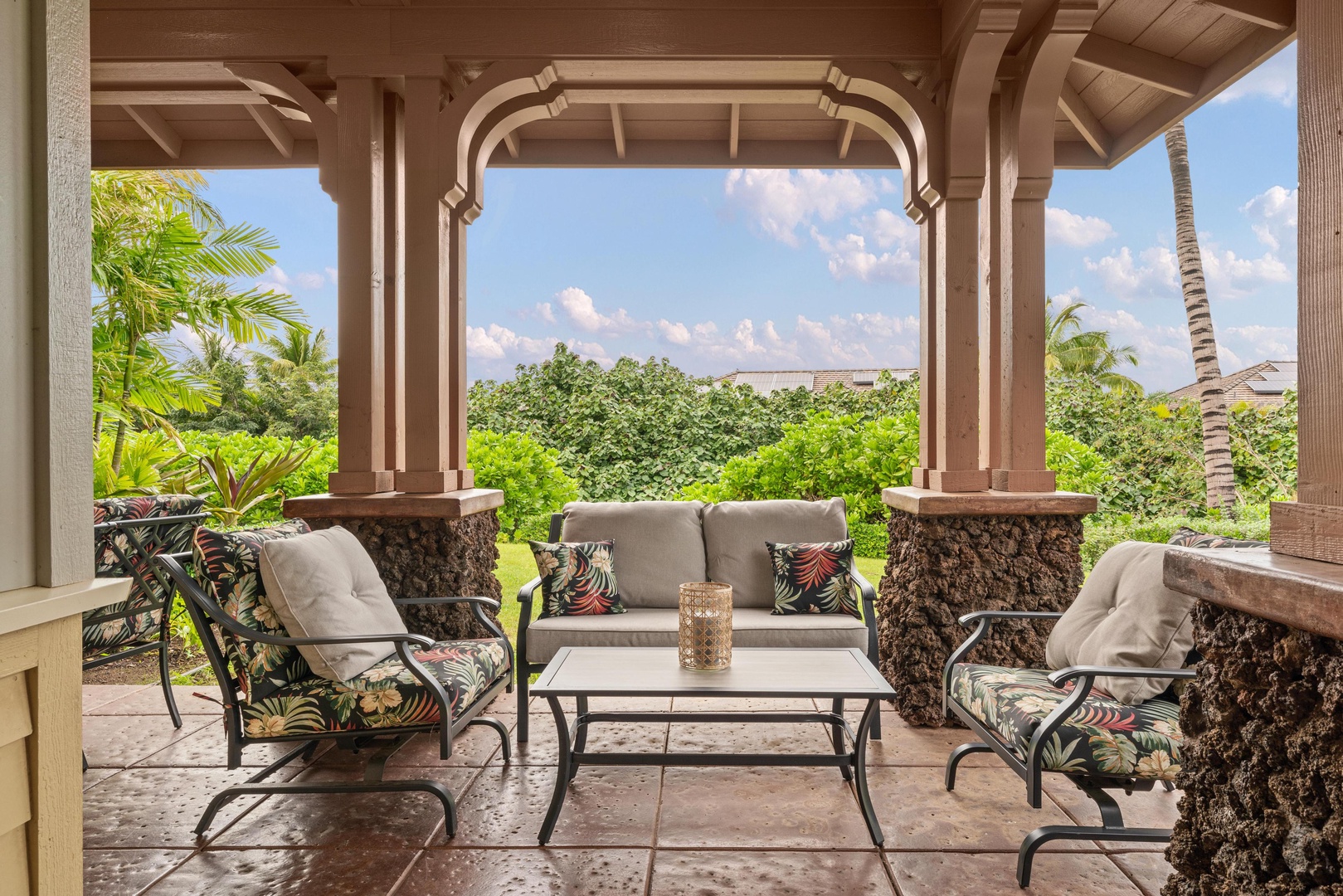 Covered lanai with seating