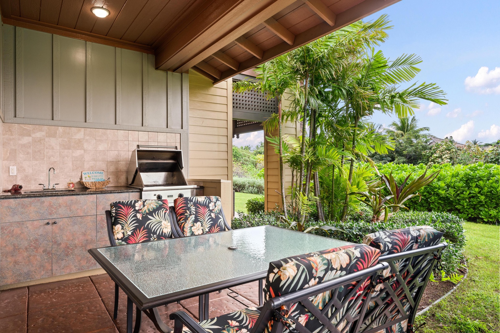 Covered lanai with built-in BBQ