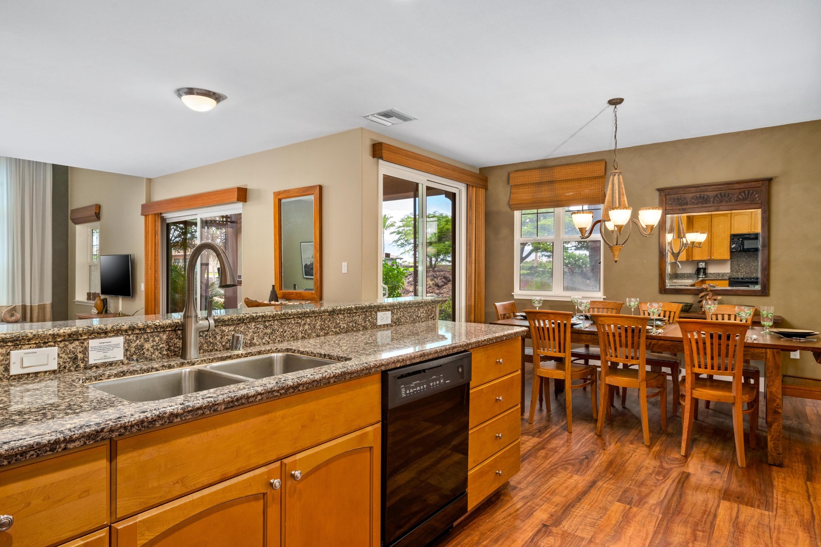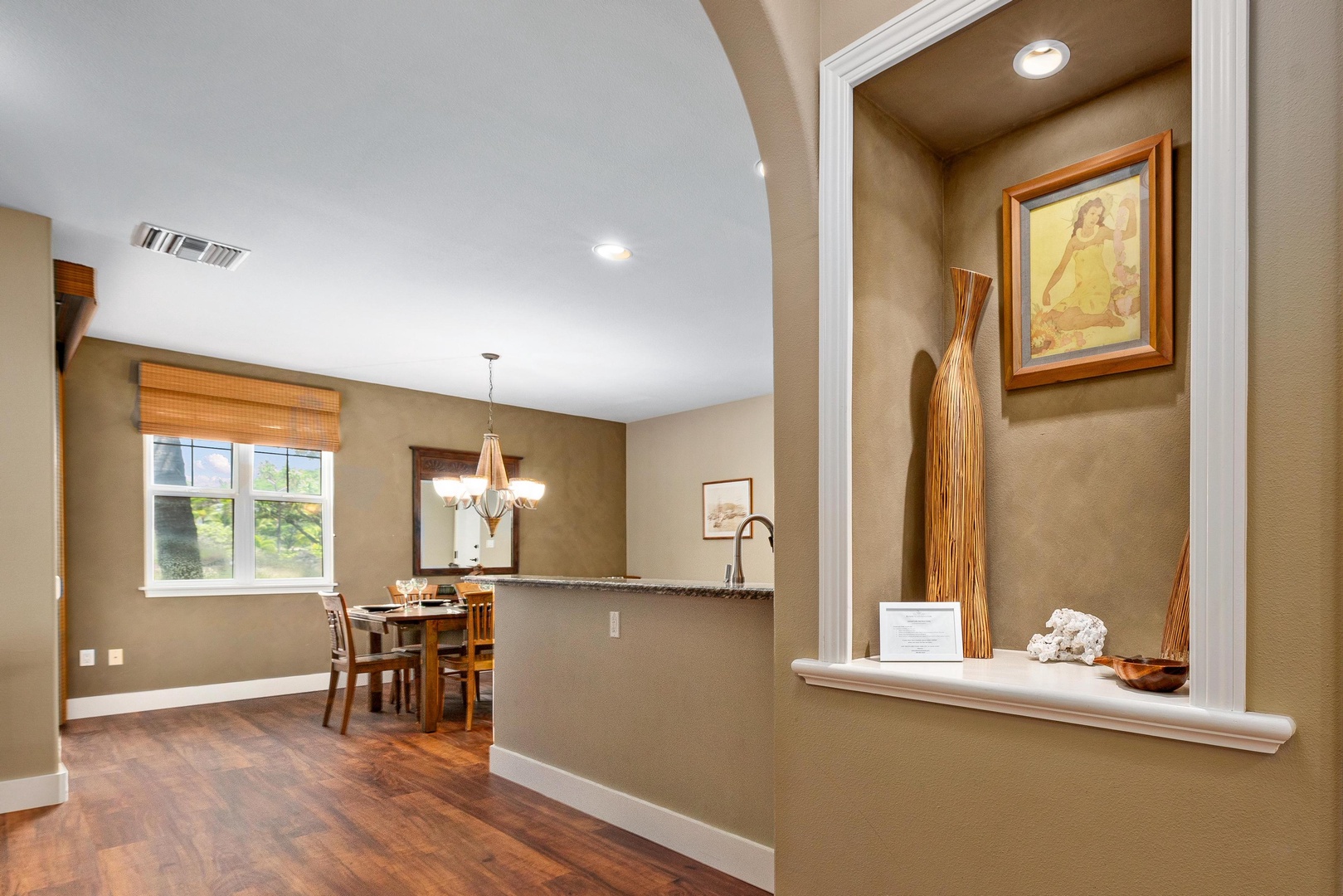 Open concept layout connects dining area, kitchen, and living room