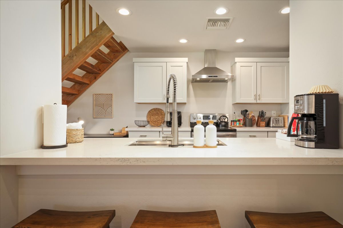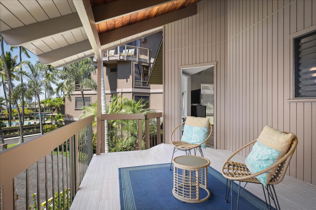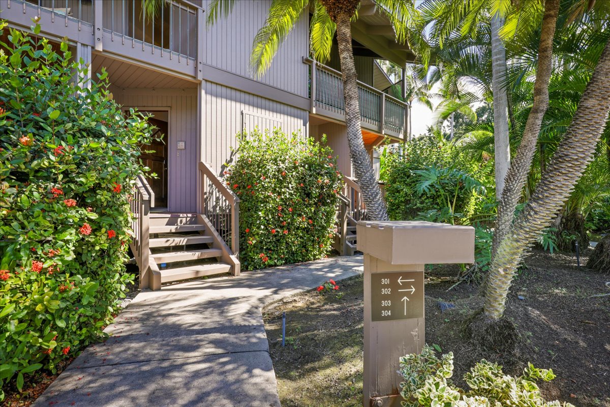 Kanaloa 303 is located in Building 3 at Kanaloa. There are a few stairs leading to the front door and then a longer staircase to the interior main living level. There is another full flight of stairs leading to the loft bedroom. Your perfect location for an amazing Big Island vacation!
