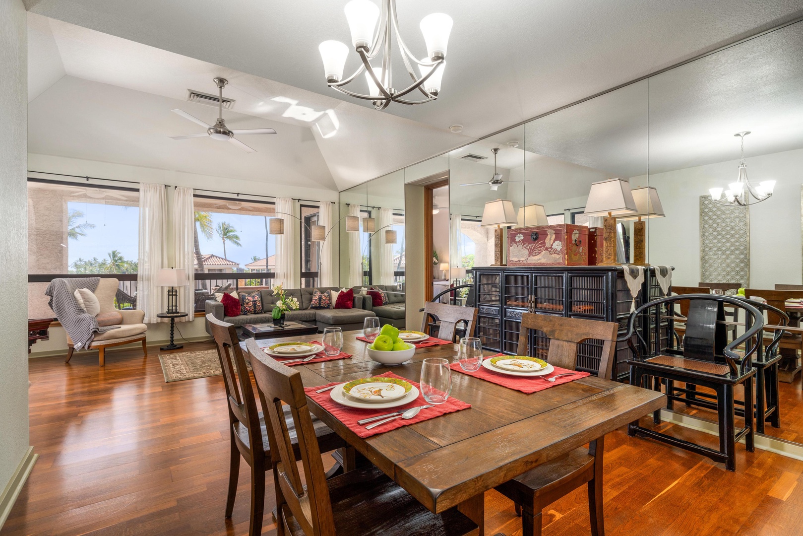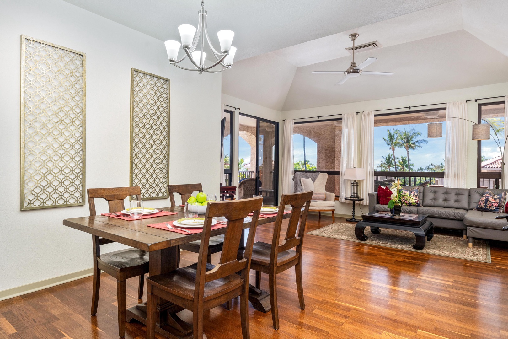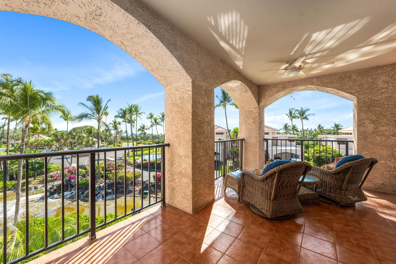 Covered lanai with seating for four
