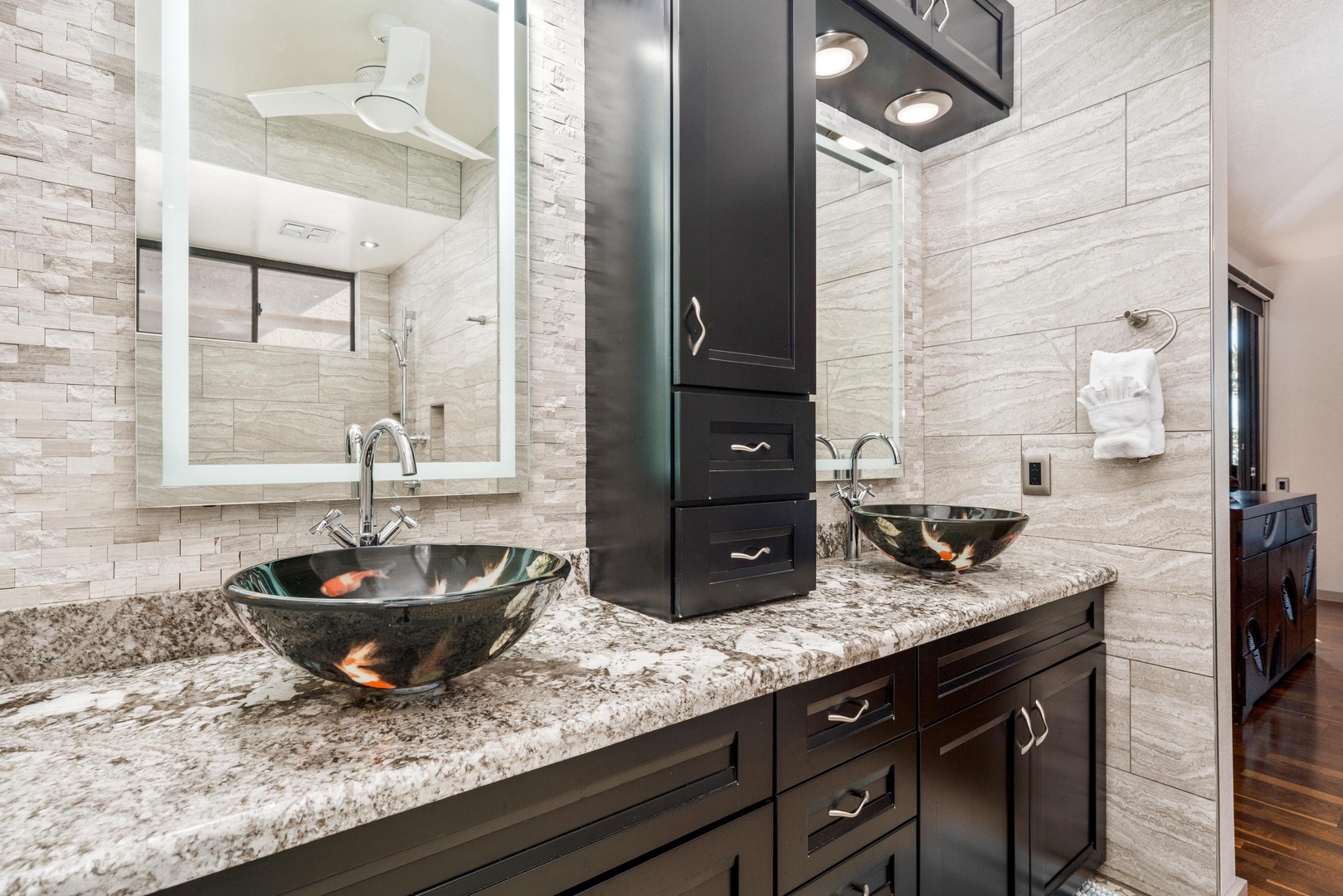 Ensuite primary bathroom with double vanity