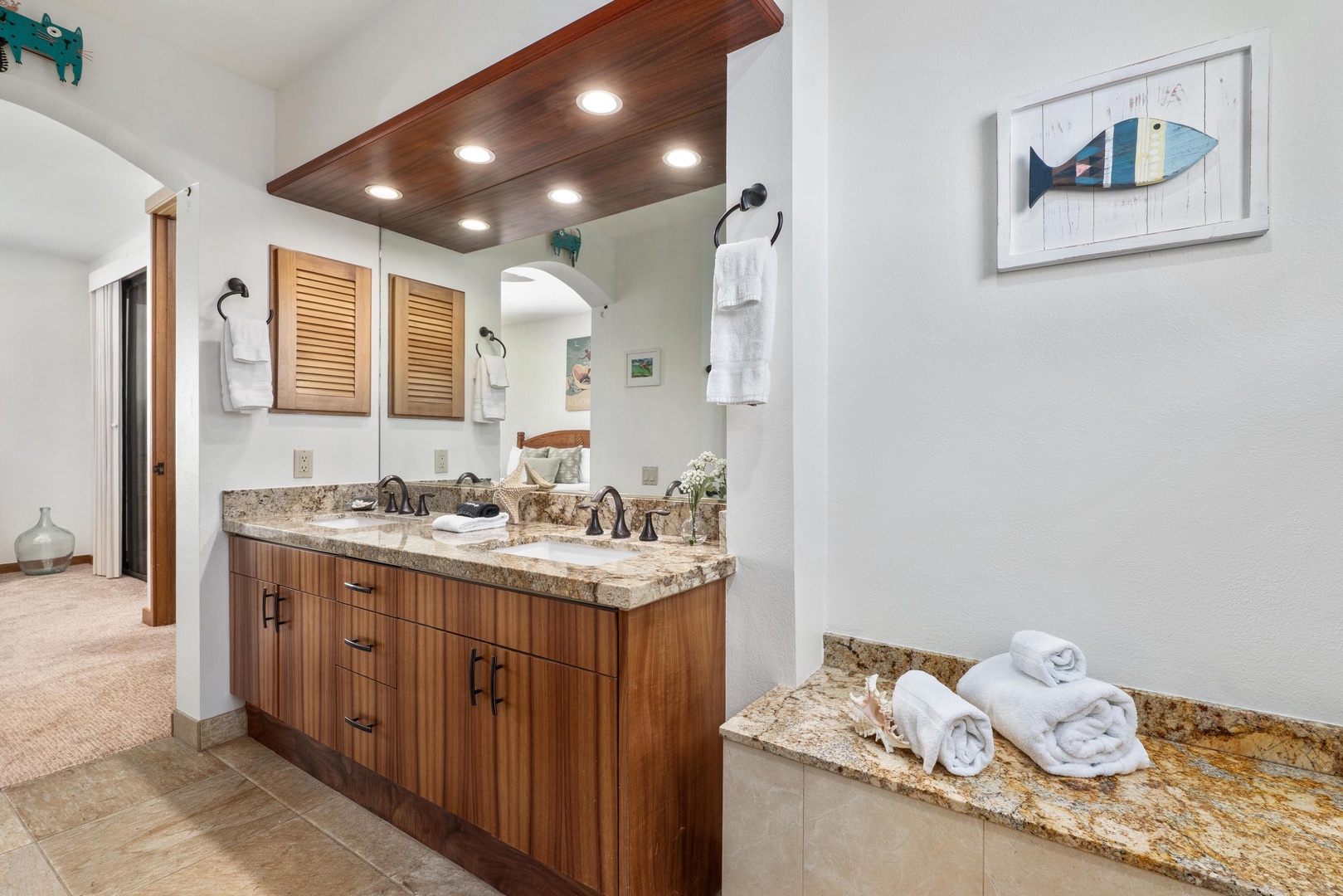 Bay Club at Waikoloa 622 is located on the second floor. There are stairs to the second floor (no elevator). This unit is a spacious 2 bedroom/2.5 bath unit sitting directly in between two pool areas at the Bay Club. One offers a café for pure relaxation. This unit offers a 2 bedroom style which is perfect for two families or a small family. This beautifully decorated, newly renovated unit will take your breath away. It has a rear facing lanai for complete privacy and a view you can see from all sides. The Bay Club has all the resort amenities you could want including two pools with a cafe, tennis courts, workout rooms, BBQ's and more.