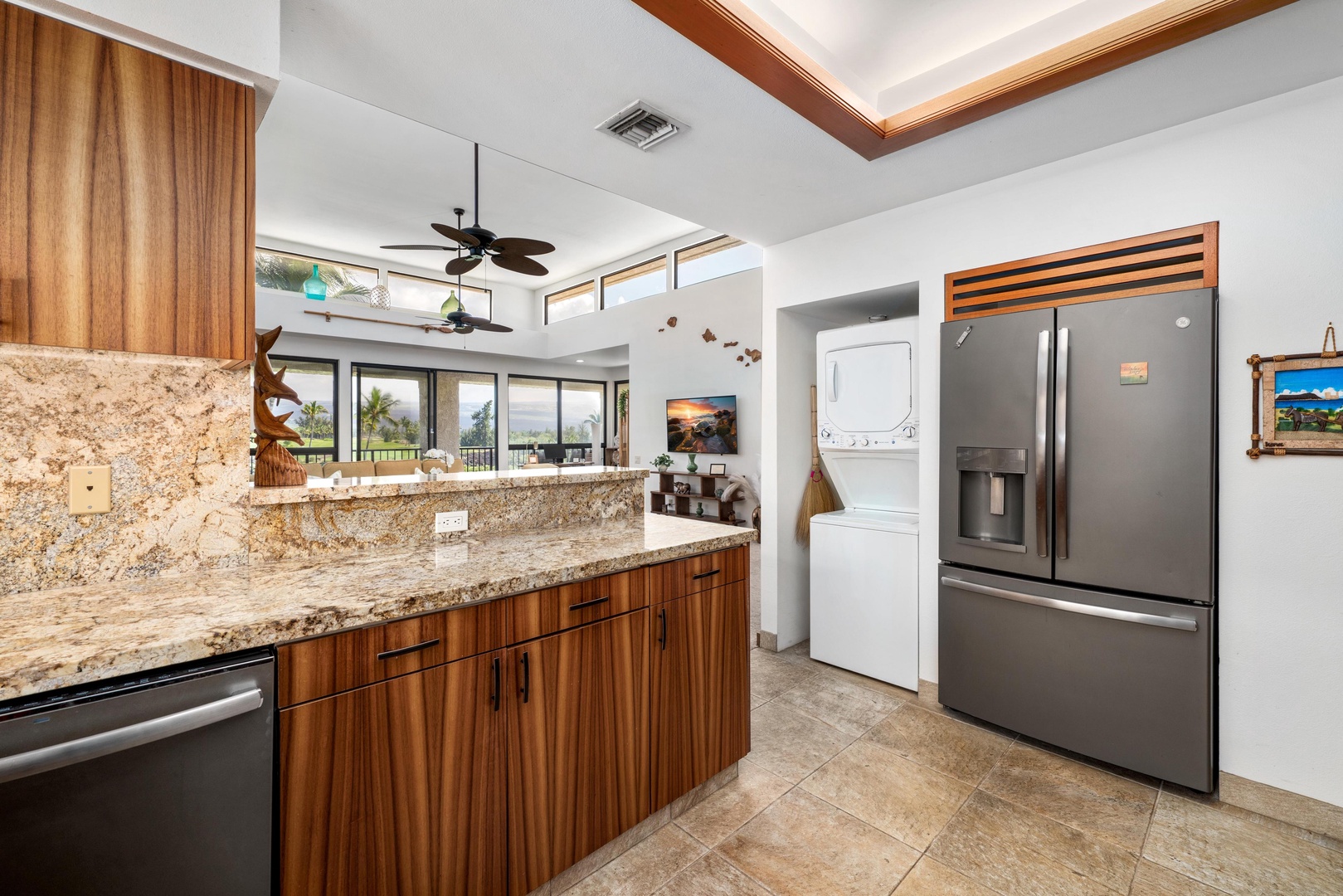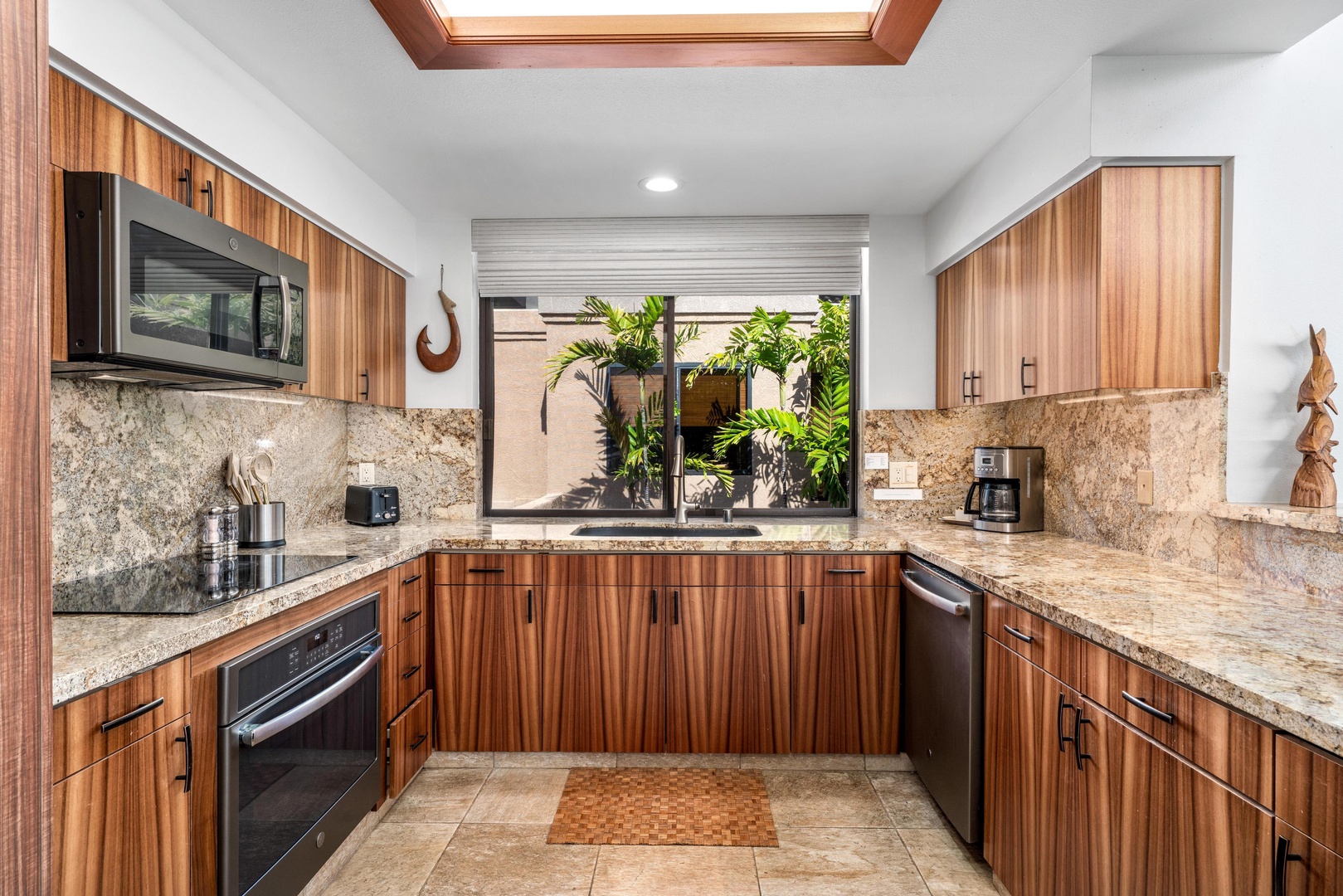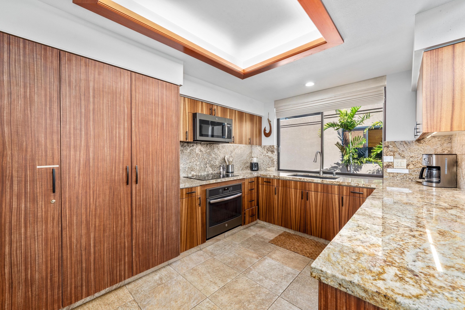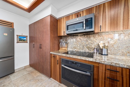 Your gourmet kitchen features warm wood cabinetry, granite countertops, and modern appliances - perfect for preparing memorable meals during your stay.