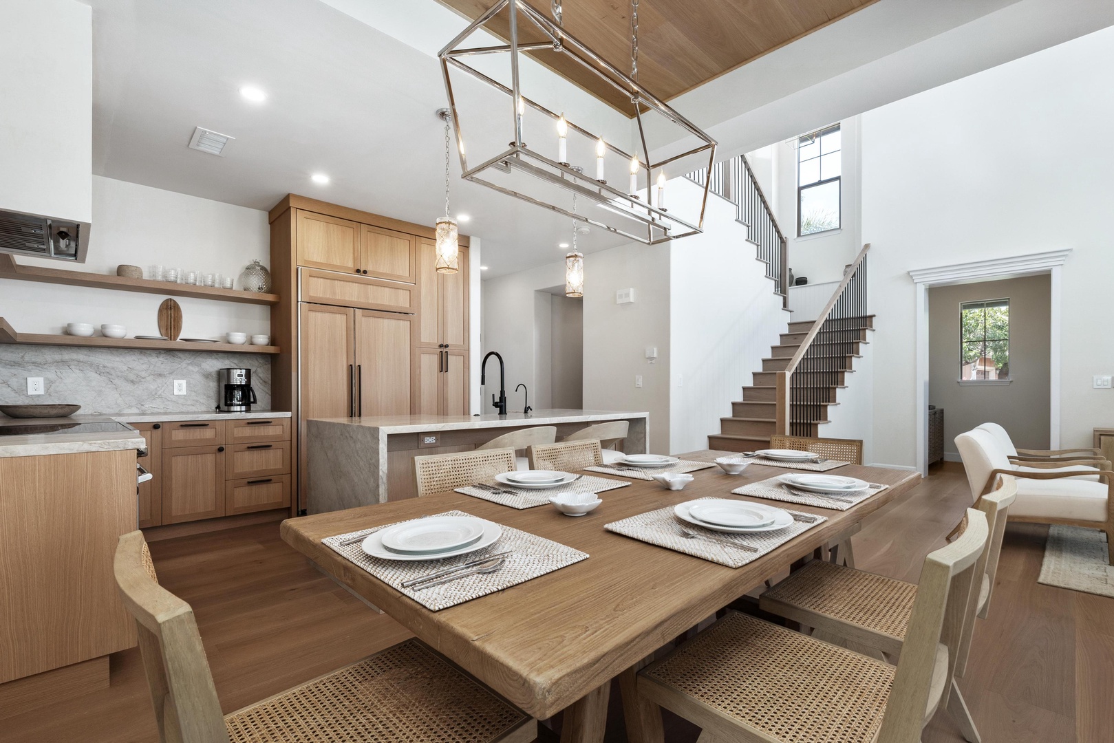 Your open-concept kitchen and dining area blends modern elegance with warm wood finishes, perfect for memorable meals together.