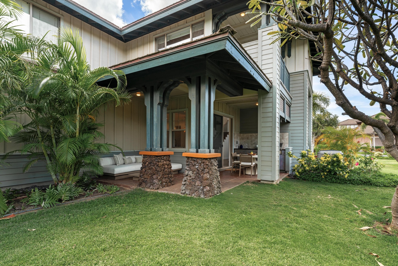 Relax on your private covered patio with comfortable seating, surrounded by lush tropical gardens and perfectly manicured lawn.