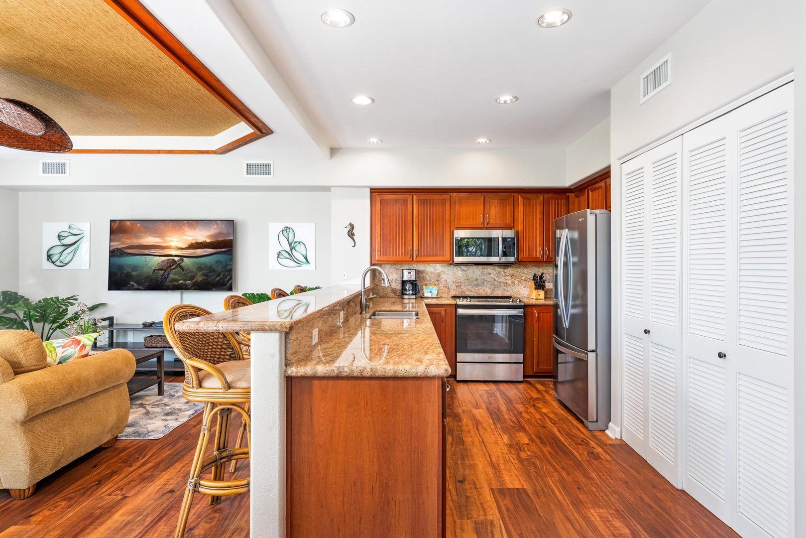 Waikoloa Beach Villas B1 convenient poolside location. Offering plenty of room for entertaining family and friends. This vacation home is a perfect place for a relaxing vacation!
