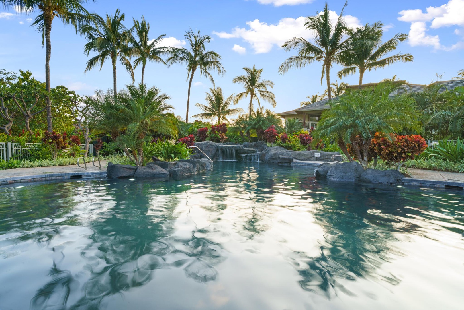The Palm Villas in Mauna Lani are a gated condominium community in the center of the Mauna Lani Resort on the Kohala Coast of the Big Island of Hawaii. The Mauna Lani Beach Resort is a master planned world class resort with Golf Courses, shopping and dining. The Shops at Mauna Lani have restaurants, shops and a grocery store.