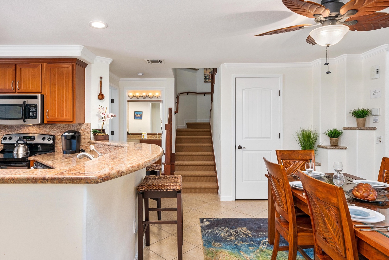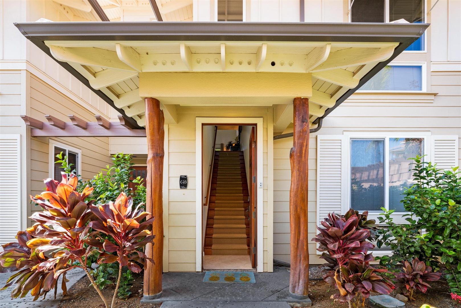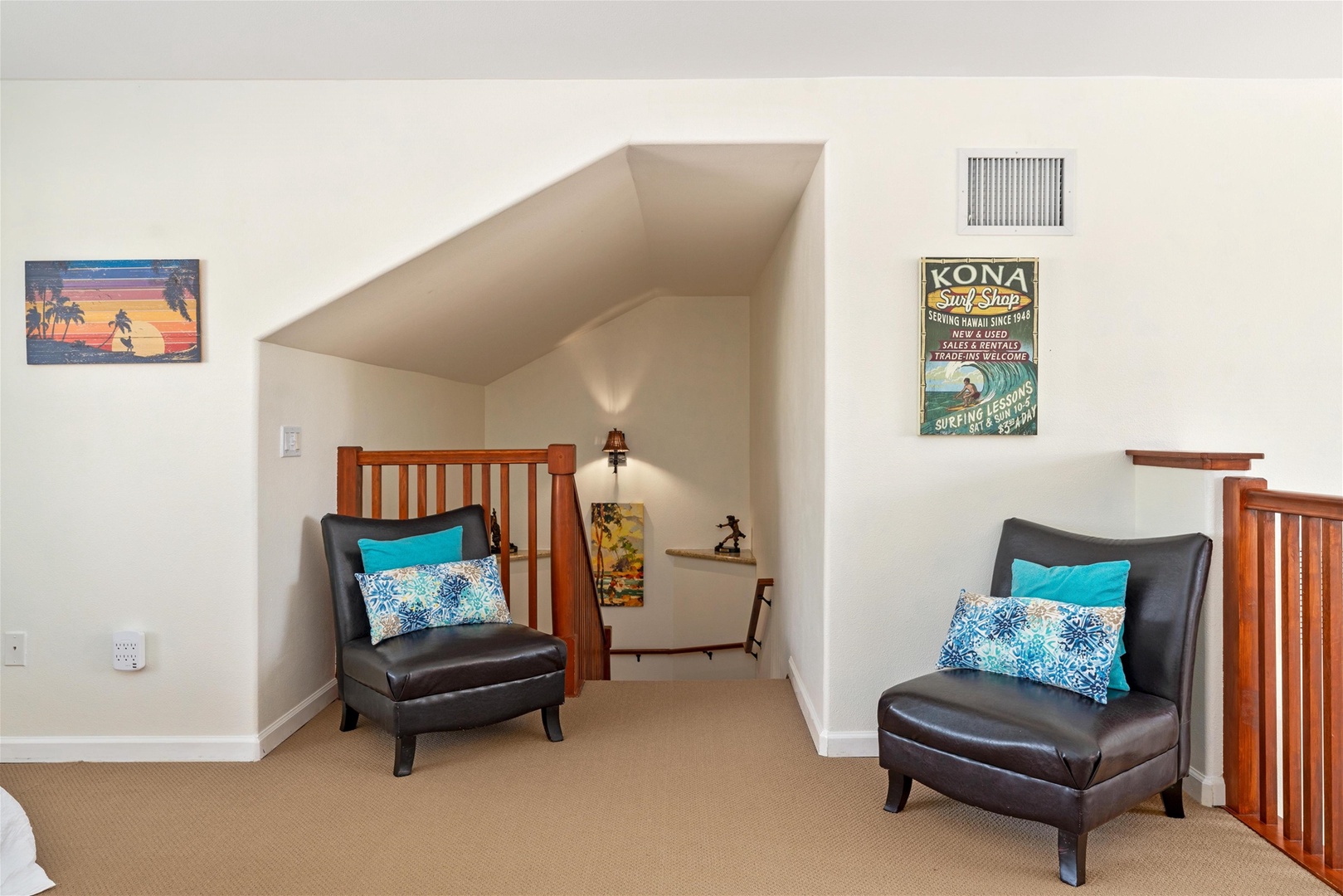 Waikoloa Beach Villas C23 is located in the C Building. It is a loft style floor plan. Upon entry to the unit, you will be going up stairs to the second floor to reach the main living area, kitchens, master suite, guest bedroom, bathroom, and washer and dryer. The upstairs loft space is ideal for a little getaway. The swimming pool is just steps away! This vacation home is a perfect place for a relaxing vacation!