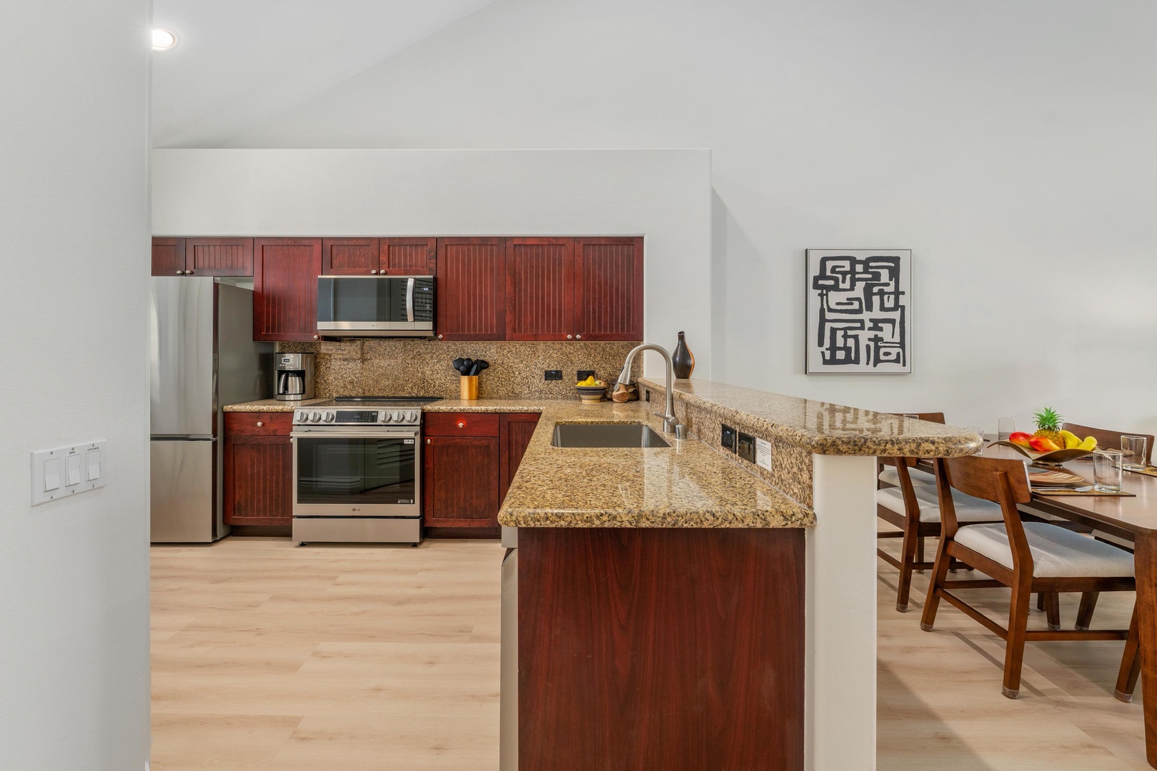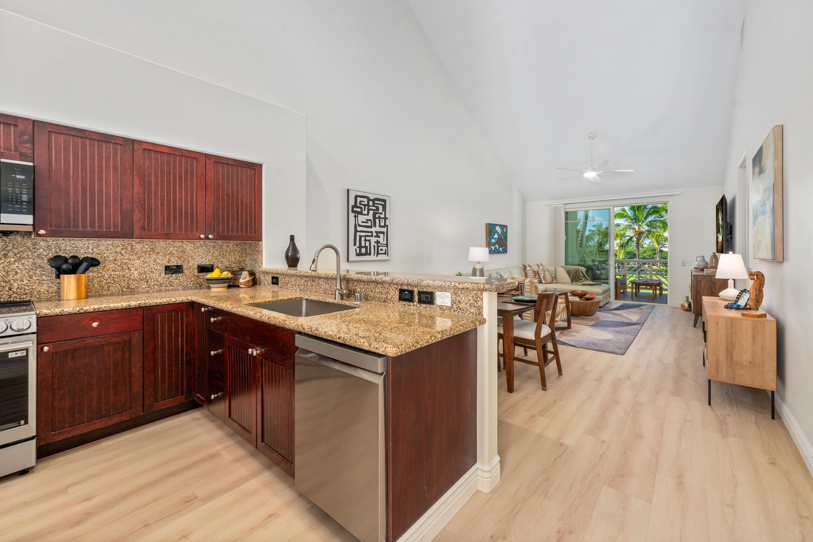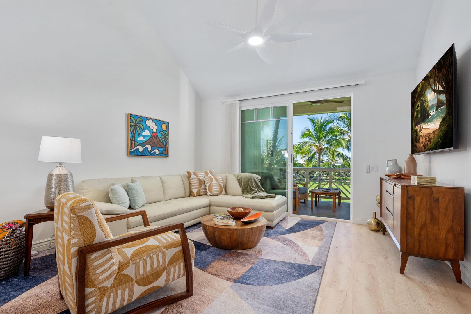 This fabulous condo, which was completely remodeled in 2025, includes 6 daily HILTON PASSES and discounted access to WAIKOLOA BEACH GOLF CLUB COURSE. Waikoloa Fairway Villas J33 is located on the third floor with spectacular views of the golf course and King's Lake. . J33 is very well situated in the Waikoloa Resort as it is a short walk to the Queen's Market and with an even shorter direct walking path to King's Shops. You can also easily walk to nearby Anaeho'omalu Bay (A-Bay) to swim, snorkel, kayak, catch an excursion or just soak up the sun. The 2025 remodel, which included all new appliances, flooring, paint, window treatments, ceiling fans, beds and furniture, was done with attention to every detail for your convenience and enjoyment. While your dedicated parking spot is just outside, you're guaranteed to enjoy the walkability of this beautiful condo with the perfect location for a relaxing vacation!