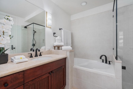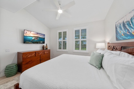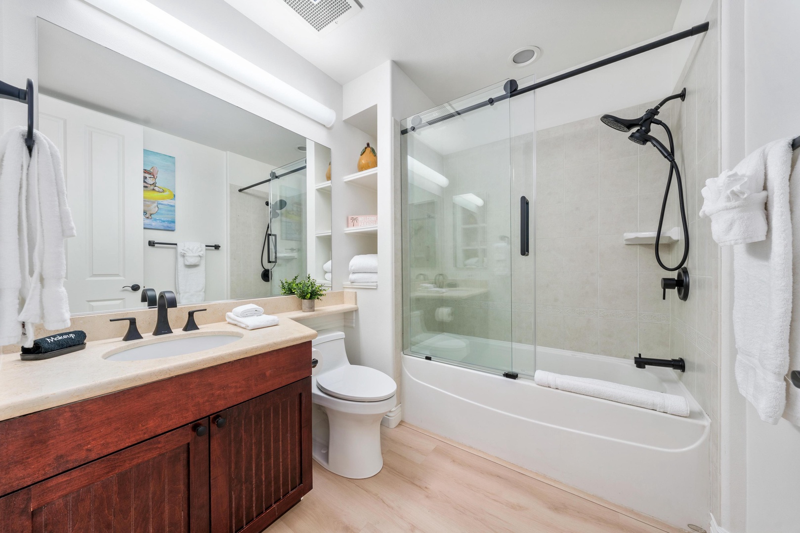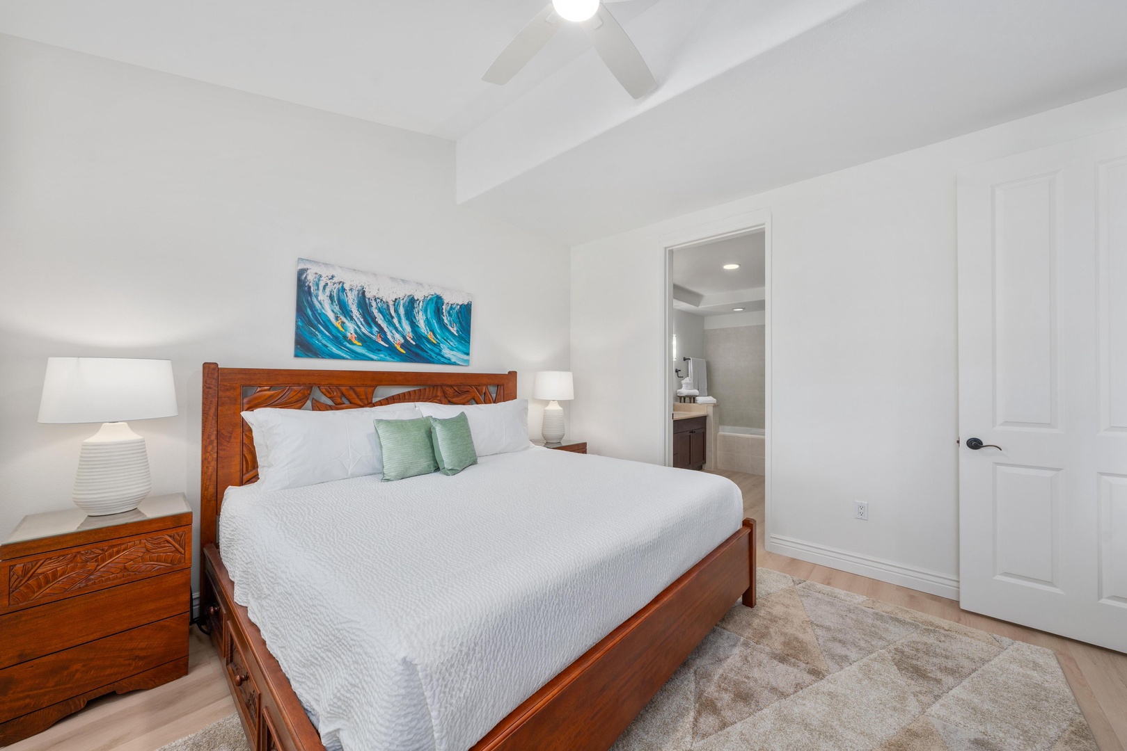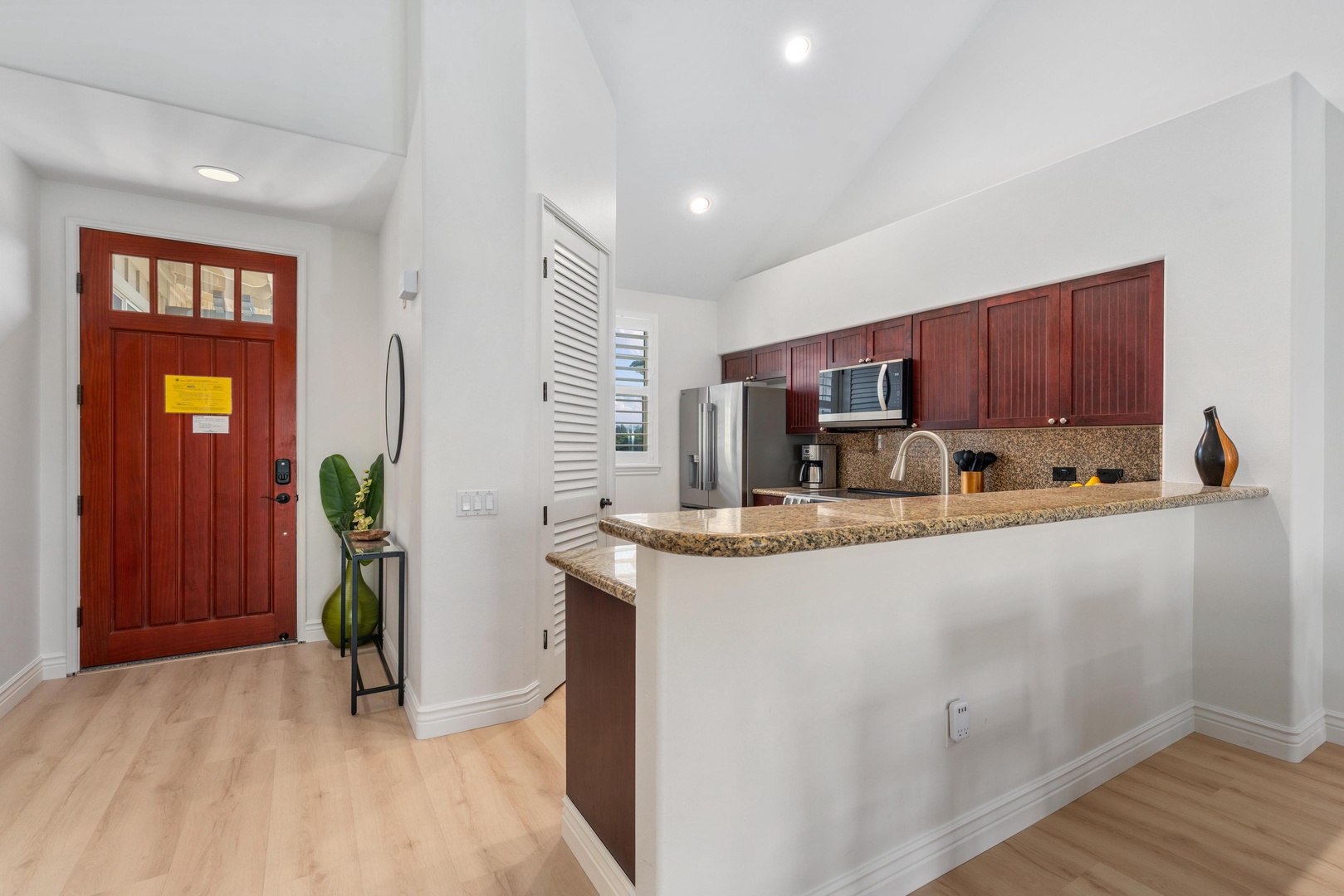 This fabulous condo, which was completely remodeled in 2025, includes 6 daily HILTON PASSES and discounted access to WAIKOLOA BEACH GOLF CLUB COURSE. Waikoloa Fairway Villas J33 is located on the third floor with spectacular views of the golf course and King's Lake. . J33 is very well situated in the Waikoloa Resort as it is a short walk to the Queen's Market and with an even shorter direct walking path to King's Shops. You can also easily walk to nearby Anaeho'omalu Bay (A-Bay) to swim, snorkel, kayak, catch an excursion or just soak up the sun. The 2025 remodel, which included all new appliances, flooring, paint, window treatments, ceiling fans, beds and furniture, was done with attention to every detail for your convenience and enjoyment. While your dedicated parking spot is just outside, you're guaranteed to enjoy the walkability of this beautiful condo with the perfect location for a relaxing vacation!