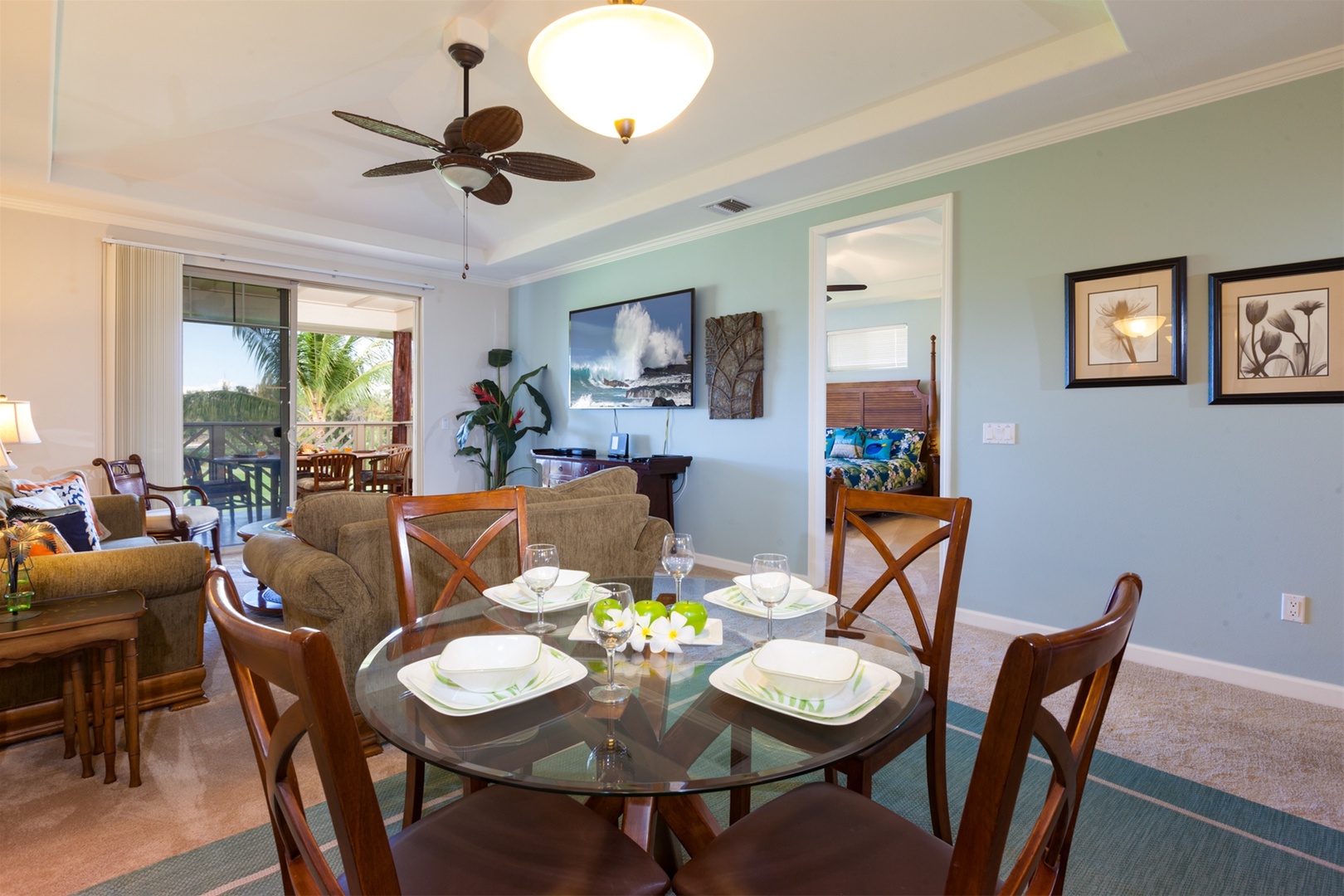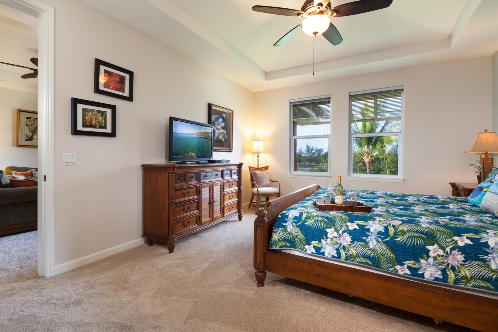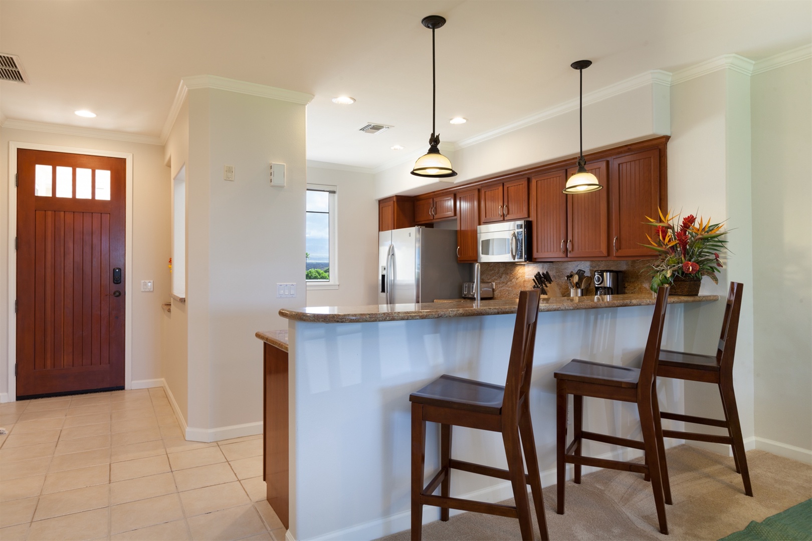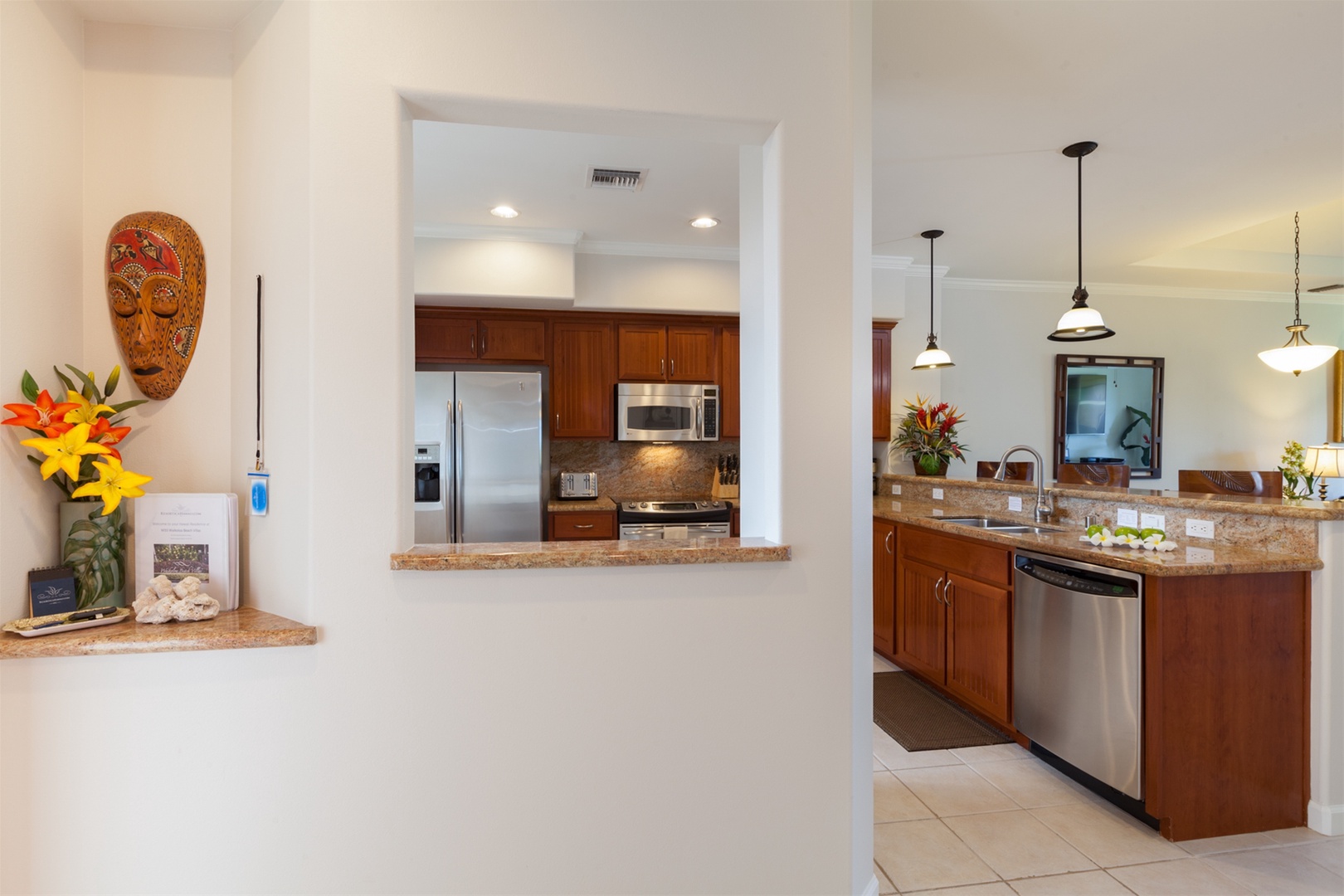 Waikoloa Beach Villas M33 is located on the third floor of the M Building. There is elevator and/or stair access to the third floor. Offering views of the golf course and tropical resort landscape. Stunning island inspired décor. This vacation home is a perfect place for a relaxing vacation!